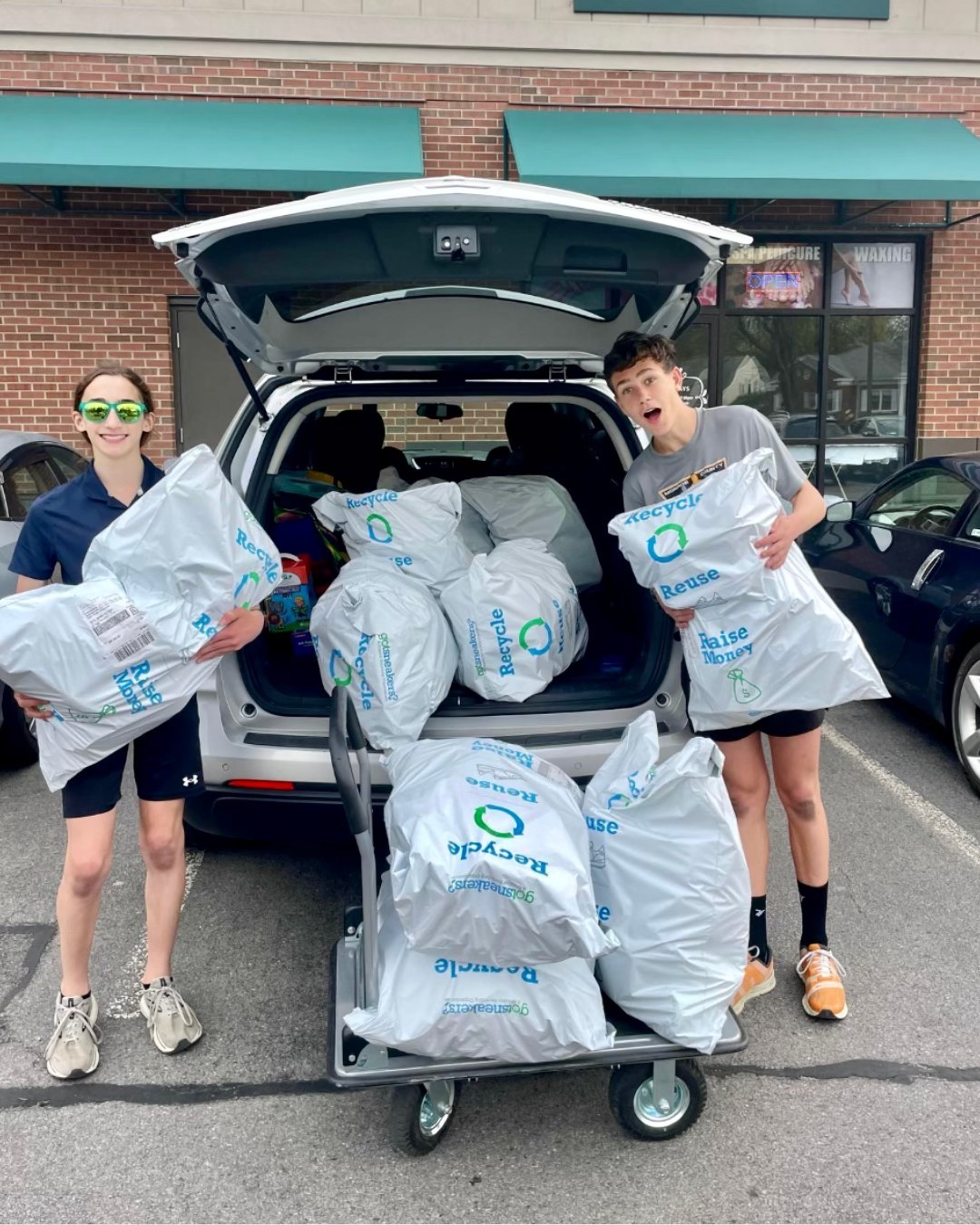 The reason this is an eco-friendly fundraiser is that we are a zero-waste company helping to keep footwear out of landfills. Every pair of sneakers we receive are either cleaned up and re-sold or recycled into new products.