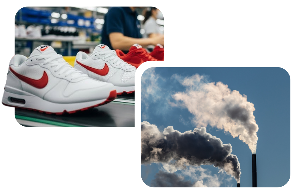 Sneakers start with raw materials like rubber, foam, textiles, and plastics, many petroleum-based.